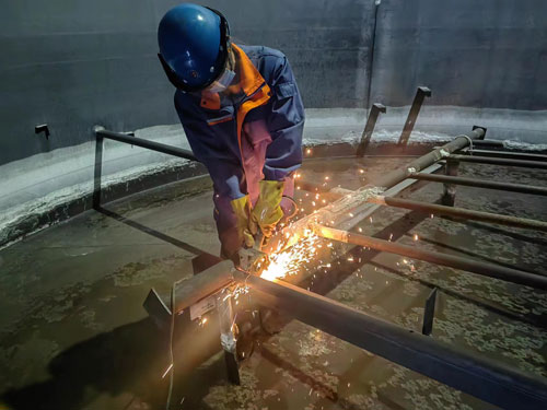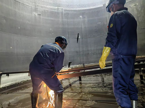 水藥庫(kù)4號(hào)堿液罐蒸汽盤(pán)管檢修更換